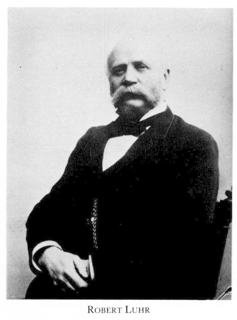 Luhr, Robert Emanuel, f 4 april 1836 i Västerås, d 29 maj 1905 i Zurich, Schweiz (enl db för Masthuggs förs, Gbg). Föräldrar: slottsin-spektoren Axel Gabriel L o Johanna Gustava Ekbom. Elev vid Västerås h elementarlärov 51—52, elev vid apotek i bl a Västerås o Jönköping 51–56, farm stud:ex 13 nov 54, apotekarex 2 febr 59, tjänstg vid apoteket Morianen i Sthlm 59–60, vid apoteket Gripen i Sundsvall 60–63, vid hovapoteket Lejonet i Sthlm 63, innehade apoteket i Trosa 16 okt 63–68, apoteket Vasen i Sthlm 13 nov 68–77, v ordf i Farmaceutiska fören 73–75, led av styr för Apotekarnes mineralvattens ab 74–76, av dir för apotekaresoc 75–77, innehade apoteket Hjorten i Gbg från 26 jan 77, led av folkskolestyr 78–93, av brandstods-komm för Städernas allm brandstodsbolag 78–93, av gatu- o vägförvaltn från 86, av byggnadskomm för badanstalt i Majorna 89–93, av stadsfullm från 22 febr 89, ordf i styr för Renströmska badanstalten i Majorna från 92, allt i Gbg, ordf i styr för apotekarekårens livränte- o pensionskassa från 94. – Ogift.