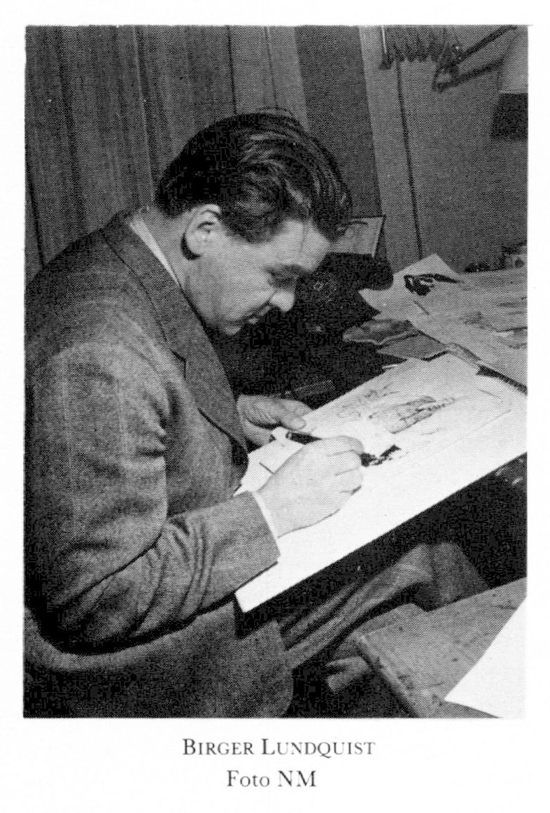 Lundquist, Birger Richard Emanuel, f 21 okt 1910 i Ovansjö, Gävl, d 18 mars 1952 i Sthlm, Bromma. Föräldrar: verkmästaren Frans Richard L o Kristina Ellen Maria Holmqvist. Realex vid Storviks kommunala mellanskola i Ovansjö 27, ritare vid Nord armaturbolaget, Sthlm, 28–29, studier vid Tekn inst:s kvällskurser o vid Figge Fredrikssons målarskola där, freelancetecknare i dagspressen, främst i DN, från 29, fast anställd vid DN från 41. – LFrKA 50.