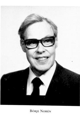 Norén, Axel Börje, f 10 juni 1919 i Stöde, Vnl, d 29 mars 1983 i Uppsala, Gottsunda. Föräldrar: socialvårdschefen Axel Henrik Vilhelm N o Sara Katarina Eklund. Studentex vid h a l i Västerås 7 juni 38, inskr vid UU 8 sept 38, tjänstg vid Statens bakteriologiska lab 15 okt 41–26 sept 42, anst vid ab Lauxein-Cascos forskn:lab 15 sept 44–31 mars 46, FK vid UU 31 jan 45, FM 15 dec 48, FL 28 maj ...