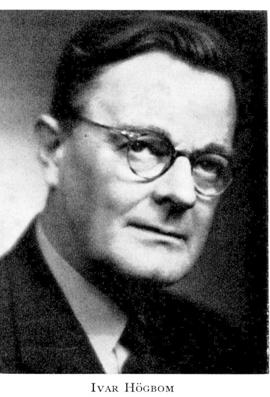 2 Högbom, Ivar, son till H 1, f 26 sept 1892 i Sthlm, Ad Fredr, d 15 juni 1962 där, Kungsh. Studentex vid ensk lärov i Uppsala vt 11, inskr vid UU 29 aug 11, FK där 3 nov 17, anställd vid A Johnson & co:s gruvavd 17—21, FL vid UU 29 maj 20, disp 23 maj 23, FD 31 maj 23, doc i geologi 9 juni 23—25, allt vid UU, prof i geologi o dekanus vid naturvetensk fak vid univ ...