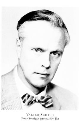 Schytt, Stig Valter, f 17 okt 1919 i Solna, Sth, d 30 mars 1985 i Tarfaladalen, Nb (kbf i Sollentuna, Sth). Föräldrar: järnvägstjänstemannen Henning Gottfrid S o sömmerskan Hulda Charlotta Jansson. Studentex vid H reallärov å Norrmalm, Sthlm, 10 maj 39, inskr vid StH 2 juni 39, amanuens vid Geografiska inst 1 juli 43, förste amanuens där 1 sept 45–30 juni 47, FK 16 sept 44, FM 9 mars 46, FL ...