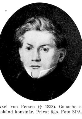 11. Axel von Fersen, son av F. 10, f. 4 (ej 10) aug. 1798 i Stockholm (Klara), d 24 mars 1838 i Pisa, Italien (enl. bouppteckn.). – Fanjunkare vid Svea livgarde; kornett vid Livgardet till häst 20 juni 1815; andre löjtnant där 9 dec. 1817; förste löjtnant där 15 dec. 1819; ryttmästare där 18 dec. 1821; adjutant hos konungen 1 april 1822; avsked med tillstånd att kvarstå som ryttmäs...