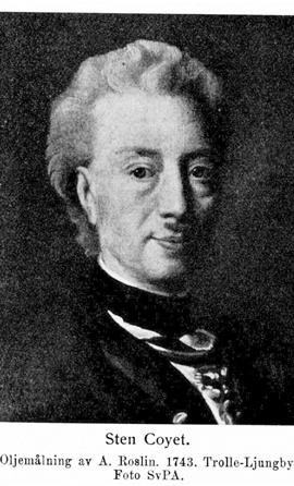 4. Sten Coyet, den föregåendes halvbroder, f. 22 okt. 1688 i Trolle-Ljungby församling, d. 23 okt. 1755 å Trolle-Ljungby slott. Musketerare vid överste M. Palmqvists värvade garnisonsregemente i Wismar 1703; sergeant därstädes 1703; fänrik 4 apr. 1705; löjtnant 9 apr. 1707; löjtnant vid Jönköpings infanteriregemente 3 maj 1707, kaptenlöjtnant därstädes aug. 1708; fången i slaget vi...