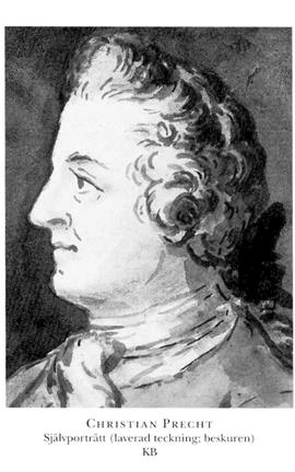 2 Precht, Christian, son till P 1 i hans andra g; f 30 nov 1706 i Sthlm, dp 4 dec där, Ty, d 17 sept 1779 där, Nik. I lära i faderns (P 1) verkstad i Sthlm, elev hos silversmeden Gustaf Stafhell där 11 jan 23, gesäll 18 jan 27, gesällvandring till bl a England, Frankrike o Tyskland 27–31, studerade bl a för guldsmeden A Heckel i London 27–29 o för guldsmederna o ornamentisterna G Ge...