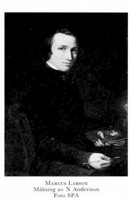 Larson, Simon Marcus, f 5 jan 1825 på Lilla Örsätter, Åtvid, Ög, d 26 jan 1864 i London (enl db för Karlstorp, Jönk). Föräldrar: rusthållaren Arvid L o Eva Sophia Fridman. Elev vid katedralskolan i Linköping vt 35—vt 39, sadelmakarlärling i Sthlm 42, gesäll 46, elev vid FrKAis antikskola 46, modellskola okt 48—49, vik teckndärare i Helsingborg 49, studerade i Düsseldorf 52—5...