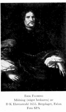 9 Fleming, Erik (Henriksson), son till F 7 i hans 1:a g, f 19 febr 1616 på Edeby gård, Salems sn (Sth; enl gravmonument i Sorunda kyrka), d 19 april 1679 på Riksten, Botkyrka sn (Sth). Medföljde 1634 som kammarh sin far på beskickningen till Moskva, assessor i generalbergsamtet 1637, studieresa till Tyskland, Holland, Belgien, England, Skottland o Frankrike 1639–42, inskr vid Leide...