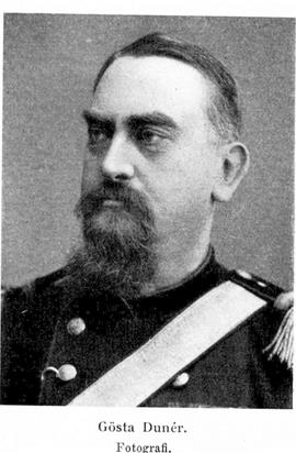 2. Gustaf (Gösta) Johan Anton Dunér, den föregåendes broder, f. 20 dec. 1840 i Billeberga sn (Malm.), d. 10 juli 1924 på Georgshill vid Ringsjön, Hörby sn (Malm.). Student vid Lunds univ. 14 dec. 1857; med. fil. kand. 1 okt. 1862; med. kand. i Uppsala 31 mars 1868; med. lic. där 29 nov. 1871; disp. för med. doktorsgrad i Lund 30 maj 1874, med. doktor ...