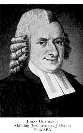 Gothenius, Johan, f 29 jan 1721 i Uddevalla, d 23 jan 1809 i Skee (Göt). Föräldrar: kh i Onsala Lars G o Maria Hjelmberg. Inskr vid LU 39, vid UU 10 mars 46, därefter åter till Lund, vid Göttingens univ 54–56, mag i Lund 23 juni 57, rektor i Marstrand 57, v lektor vid Gbg:s gymn 60, prästv 62, rektor vid trivialskolan i Gbg 64, lektor i logik o metafysik i Gbg 68, teol dr 14 okt 72, led av b...