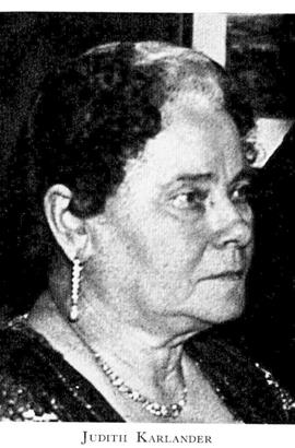 Karlander, Judith, f 31 mars 1865 i Ölmevalla, Hall, d 27 sept 1944 i Gbg, Domk. Föräldrar: lantbrukaren Elias Olsson o Anna Justina Jansson. Restaurangidkare.