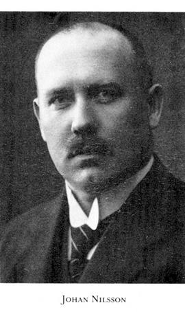 Nilsson, Johan, f 21 aug 1873 i Färlöv, Krist, d 15 mars 1963 i Kristianstad. Föräldrar: lantbrukaren Åke N o Bengta Persdtr. Elev vid privatskola i Önnestad, Krist, kontorist vid Mårten Pehrsons valsqvarn, Kristianstad, 88–91, inspektor vid Umberga gård, Vendel, Upps, 91, arrenderade Skottlandshus, Färlöv, 95–25 o Ka...